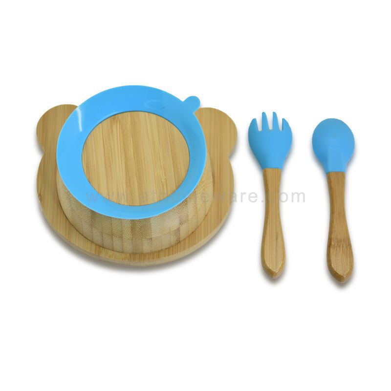 AC097 Wholesale Bamboo Baby Bowl Silicone Panda Shape Kids Wooden Tableware Set