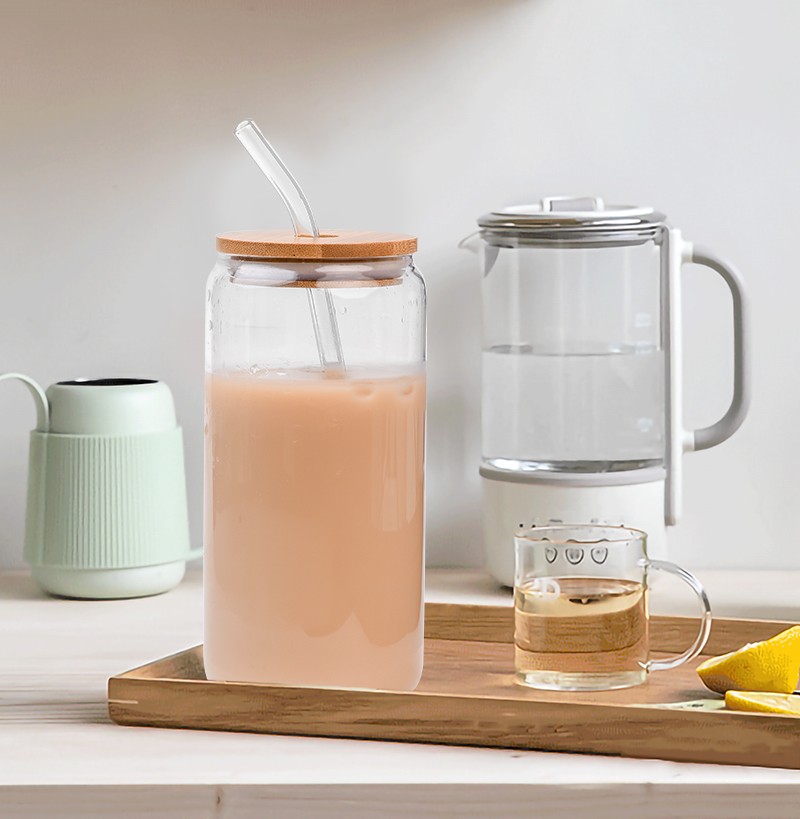 20oz glass cup with bamboo lid