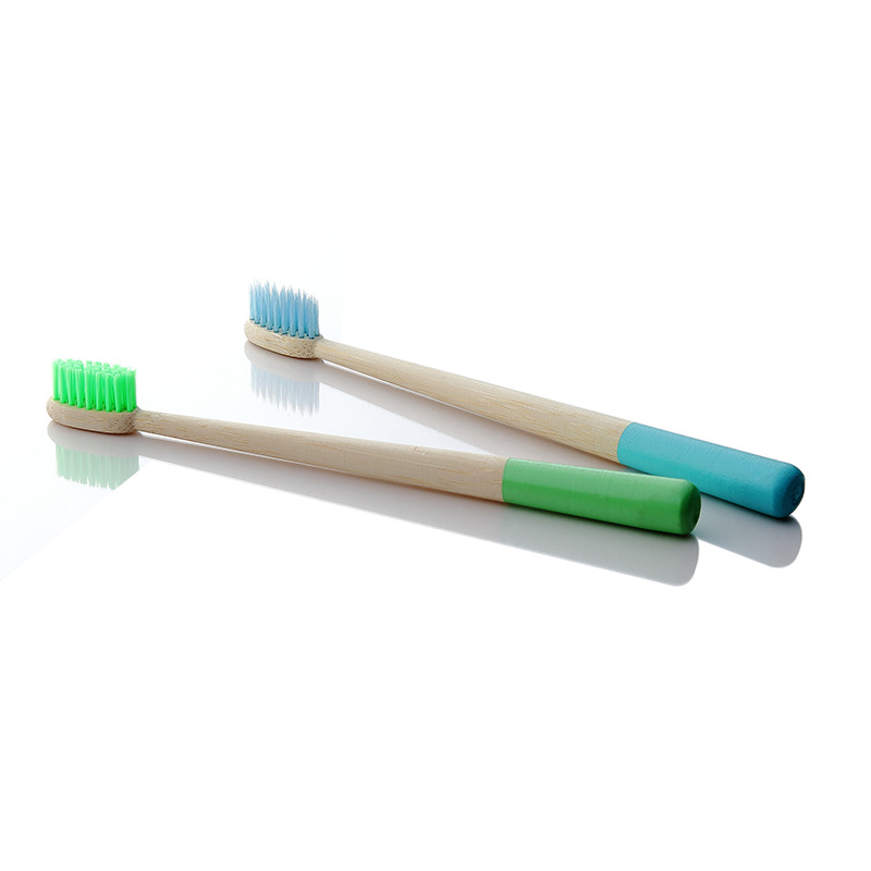 Low price bamboo round toothbrush disposable environmental friendly moso bamboo toothbrush with painted color bottom