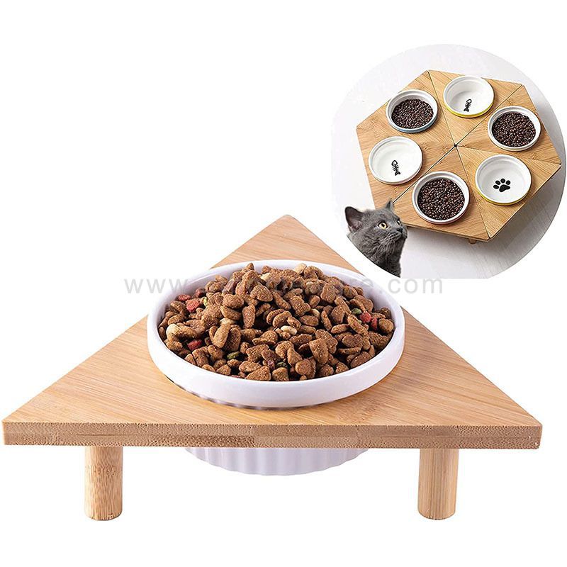 Bamboo wooden luxury ceramic pet feeder 2022 weight trendy personalized dog and cat bowl elevated eco ecofriendly rack