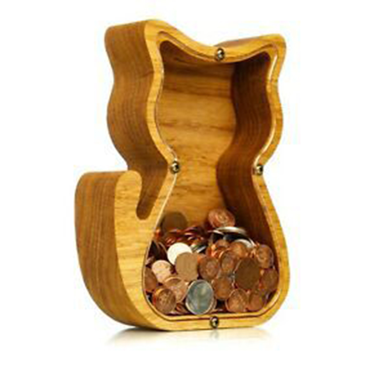 Custom English Letter natural wooden coin bank money box fashion animal dinosaur piggy bank home decoration