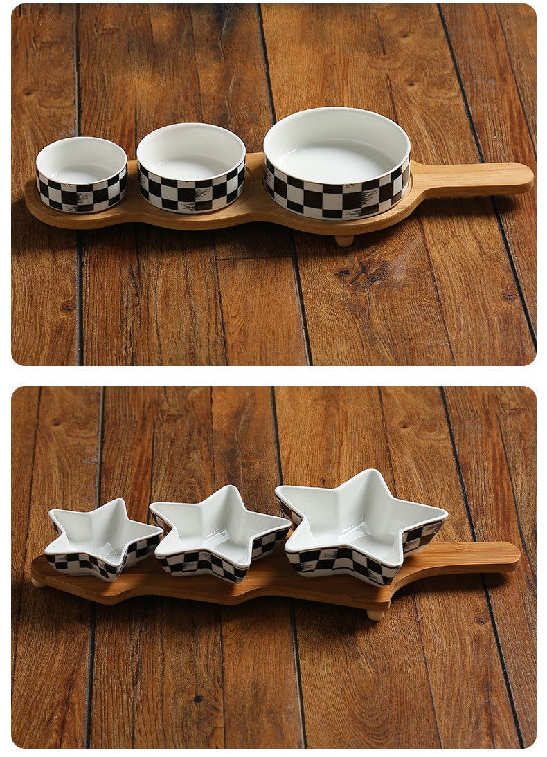 Luxury set of 3 snack serving dip dish dry fruit plate ceramic small mini soy sauce bowl with dessert plate stand
