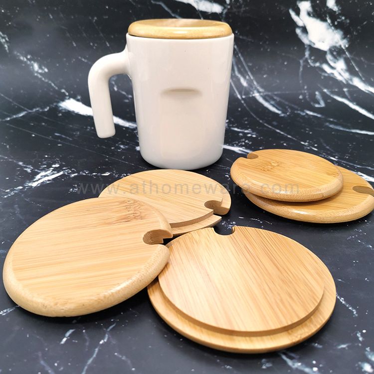 Wholesale Eco-friendly Ceramic Mug Bamboo Wooden Lid Carbonized Bamboo Lid with Spoon Hole