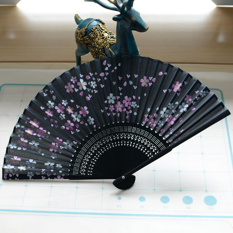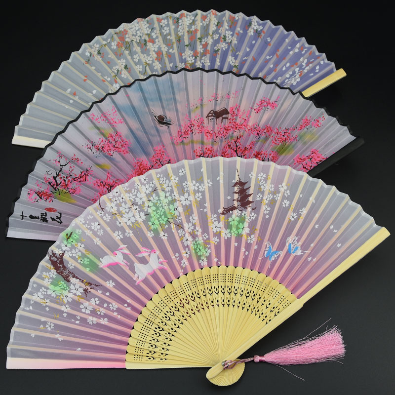 Custom Decorations Single-sided Folding fan bamboo Silk Cloth Lady Fan with Tassels