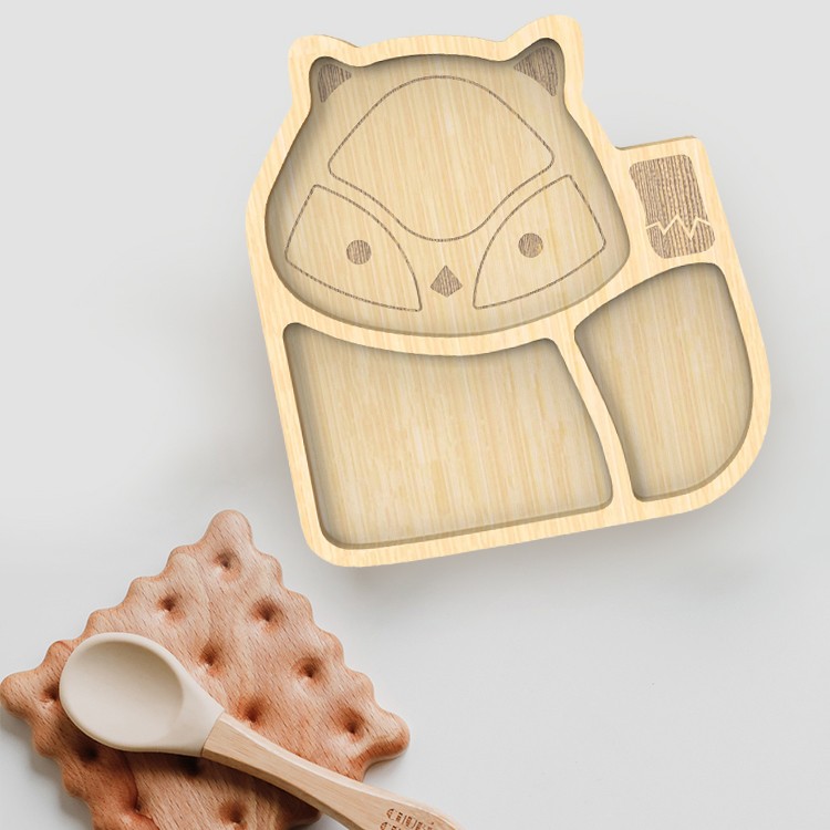 Free Shipping Wholesale custom printed child bamboo plates fox baby kids dish wooden animal feeding