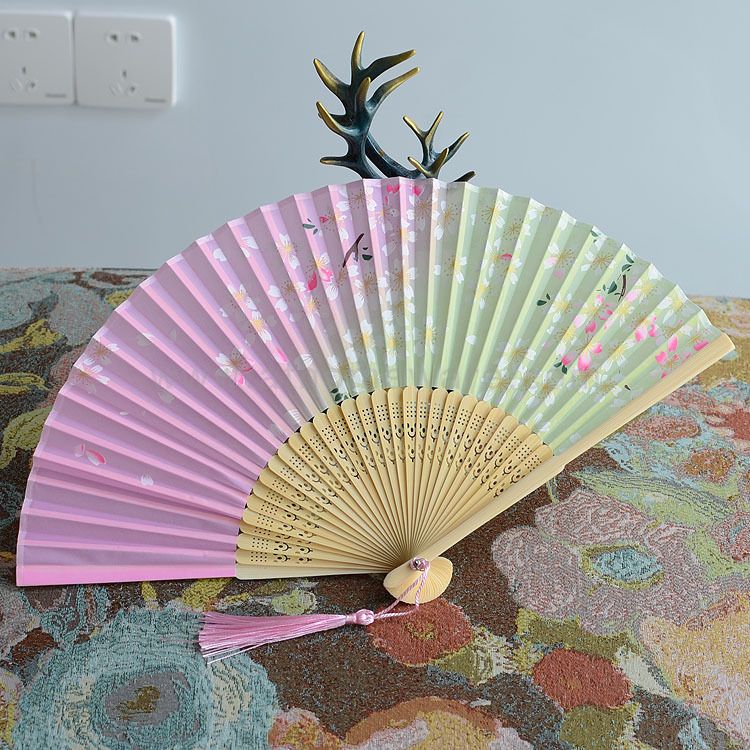 Custom Decorations Single-sided Folding fan bamboo Silk Cloth Lady Fan with Tassels