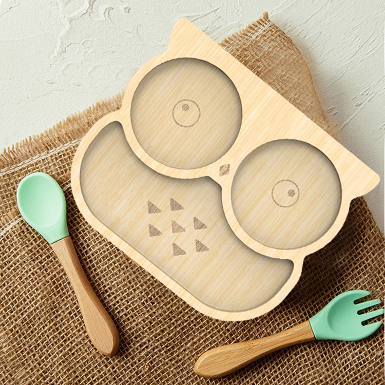 High quality custom design baby dishes kids organic bamboo wood plates food dinner cutlery feeding t