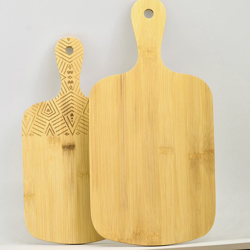 Bamboo Cutting Board ,Meat Chopping Boards,Pizza Peel Paddle with Handle for Homemade Baking Pizza Bread Cake Fruit Vegetables (Small Square -Board)