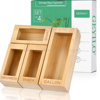AC506 Custom Size Food Storage Bag Holders Premium Bamboo Ziplock Bag Storage Organizer Kitchen Draw