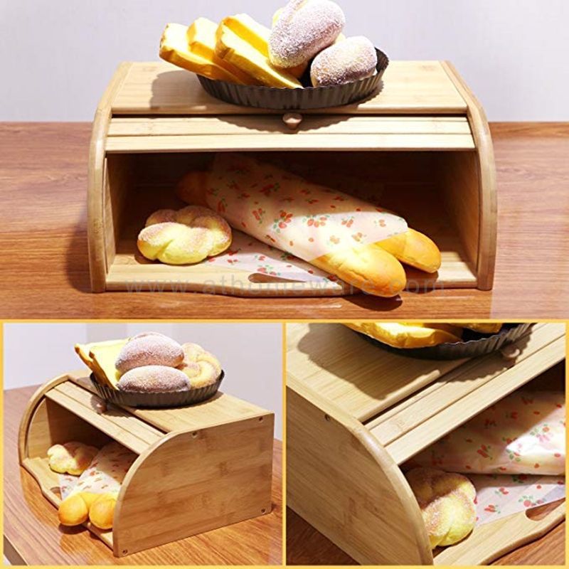 Bamboo Bread Bin, with Rolling Lid Fresh Bread Storage Natural Brown