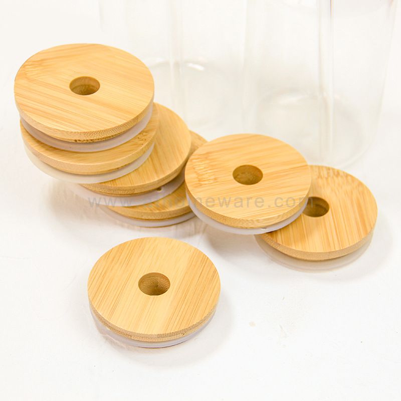 Promotional Wholesale Custom 62mm Bamboo Lids with Straw Hole for Beer Can Glass Bamboo Jar Lid